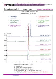 | 化合物: | 2-ヒドロキシ-3-メチル酪酸 | 2-ヒドロキシイソ酪酸 | 2-ケトグルコン酸 | 3-ヒドロキシ-3-メチルグルタル酸 | 3-ヒドロキシプロピオン酸 | 3-メチルグルタル酸 | 酢酸 | アジピン酸 | 安息香酸 | ブタン-1,2,3,4-テトラカルボン酸 | cis-アコニット酸 | クエン酸 | フマル酸 | グルコン酸 | グルコース 1-リン酸 | グルコース 6-リン酸 | グルタル酸 | グリコール酸 | グリオキシル酸 | イソ酪酸 | イソクエン酸 | イソ吉草酸 | イタコン酸 | L-酒石酸 | 乳酸 | レブリン酸 | マレイン酸 | リンゴ酸 | メサコン酸 | N-アセチルノイラミン酸 | n-酪酸 | N-グリコリルノイラミン酸 | n-吉草酸 | o-フタル酸 | オキサロ酢酸 | ホスホエノールピルビン酸 (PEP) | プロピオン酸 | ピログルタミン酸 | ピロメリト酸 | ピルビン酸 | コハク酸 | trans-アコニット酸 | トリメシン酸 | α-ケトグルタル酸 |